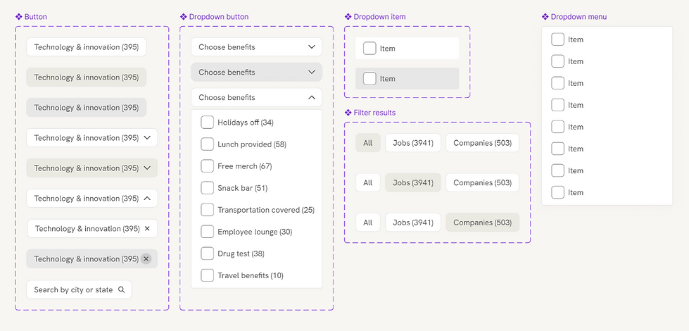 Overall, working on Cooper, and especially the filters, significantly expanded my design thinking. Instead of just focusing on creating a design solution, I learned to think deeply about who I was designing for and how to encourage users to actually engage with the filters I created. I also explored the full range of possibilities for this feature, including edge cases like how the interface should look when no results are found. Through this process, I strengthened my understanding of visual hierarchy and information architecture, refined the search flow to support clearer navigation, and improved my efficiency in Figma by using auto layout and reusable components under tight deadlines.
